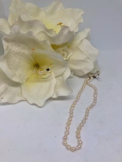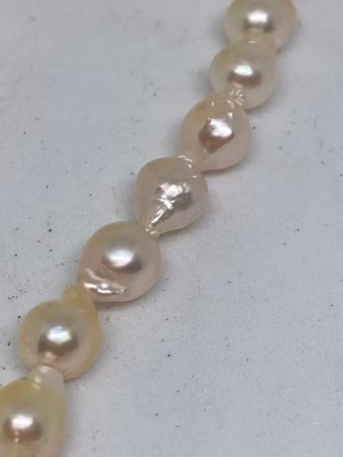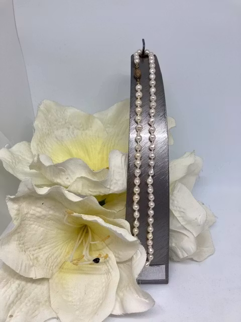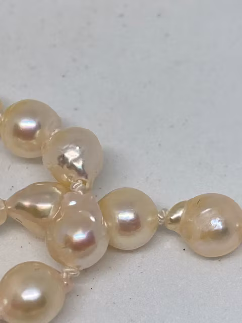 Halsbander är trätt på pärlsilke med knutar i mellan pärlorna