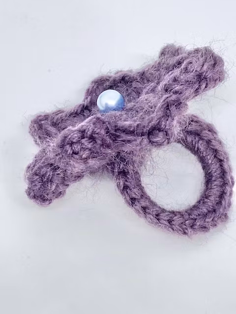 Handgjord lila virkad ring I lager. 0 SEK 198 SEK Handgjord virkad lila ring med blå snäckskalspärla.Strl inv. dia. 17,5 inv.omk 54Material lila acrylgarn med snäckskalspärla och mässingringDesign JemasMixInvirkad mässingring som stödRingen är inte stärkt