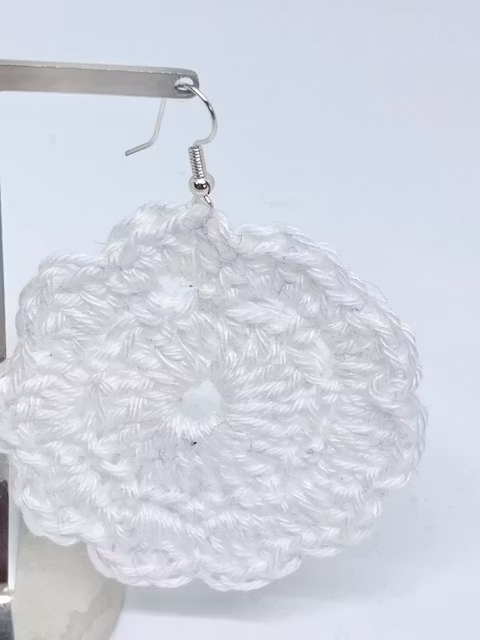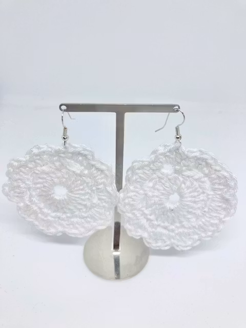 Handgjorda virkade vita örhängen Blomma Stor med vacker smyckespåse