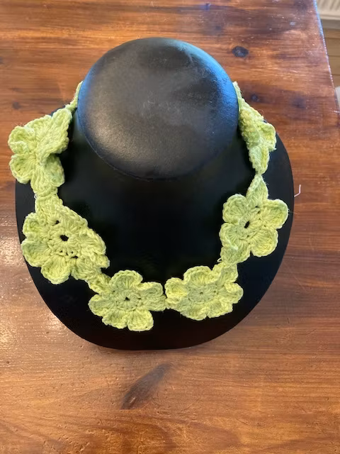 Handgjort Virkat Grönt Blomhalsband 498 SEK 198 SEK Produkten är tyvärr slut i lager. :( Handgjort grönt virkat Blomhalsband