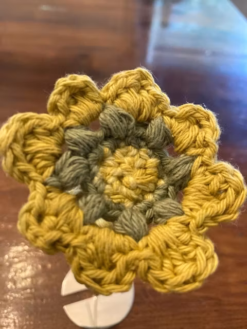 Diameter på det virkade blomhängen är ca 6,5 cm