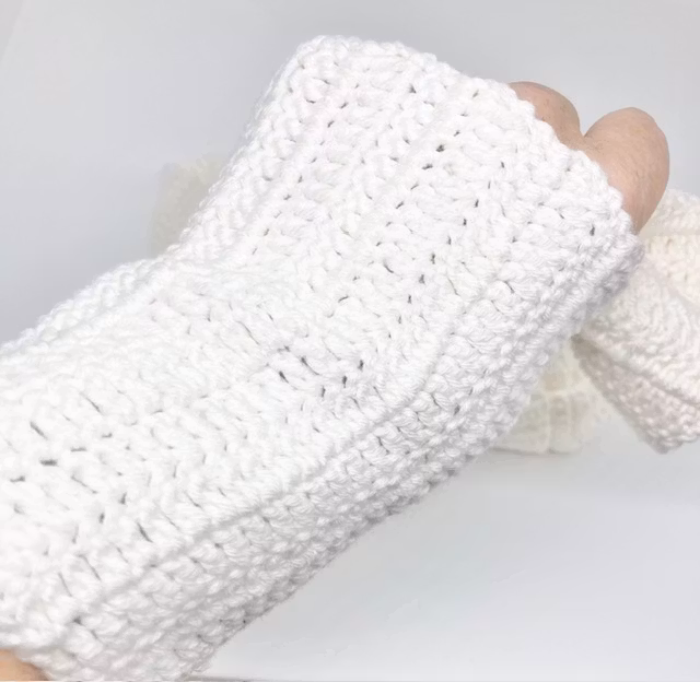 VIRKADE Handledsvärmare I VITT GARN 50% BOMULL 50% ACRYL