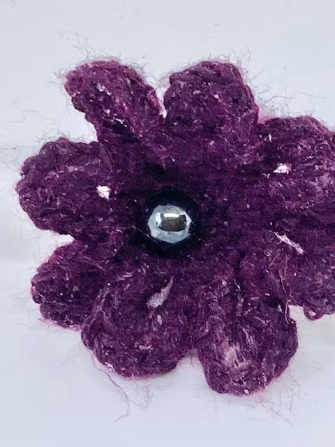 Dia. på den virkade blomman är ca 5 cm.