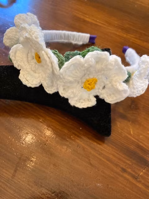 Detta diadem är virkat på frihand och därför kan det förekomma ojämnheter o olikheter som är typiskt för handgjorda produkter