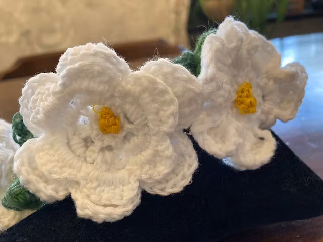 Handgjorda vita Virkade blommor på diadem