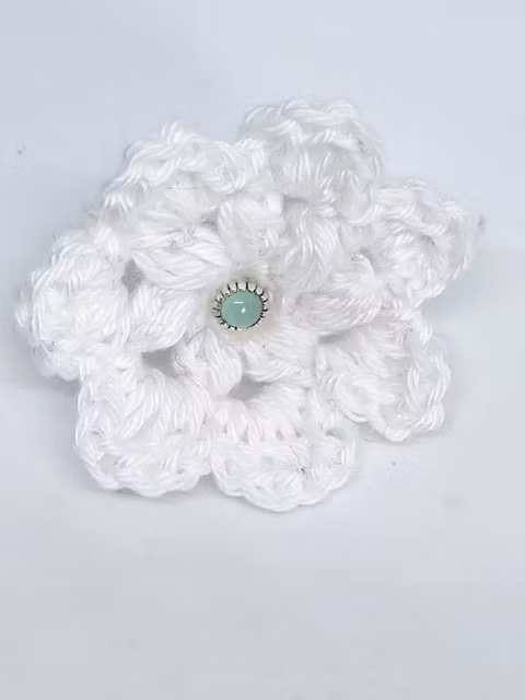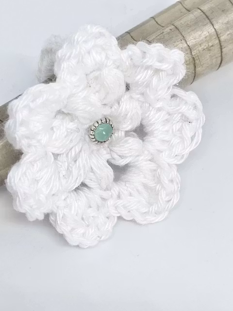 Vacker handgjord virkad ring med invirkad spinning silverring och virkad smyckespåse