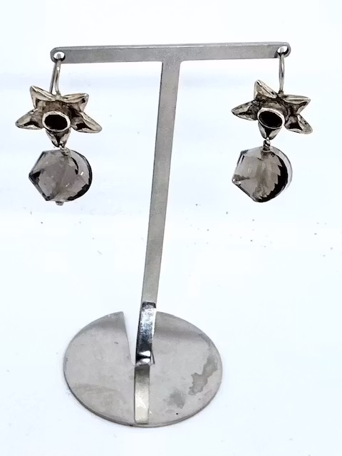 Vintage Silverörhängen med rökig halvädelsten Design Mia Petra.