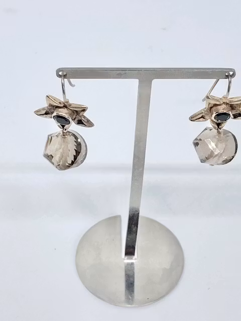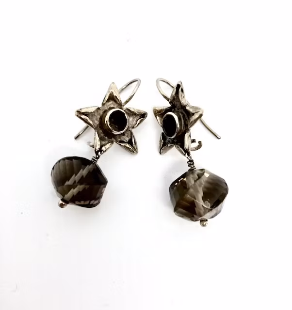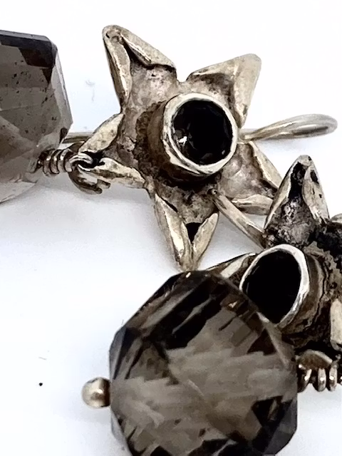 Unikt Handgrjort Silverörhänge med en vacker rökig halvädelsten