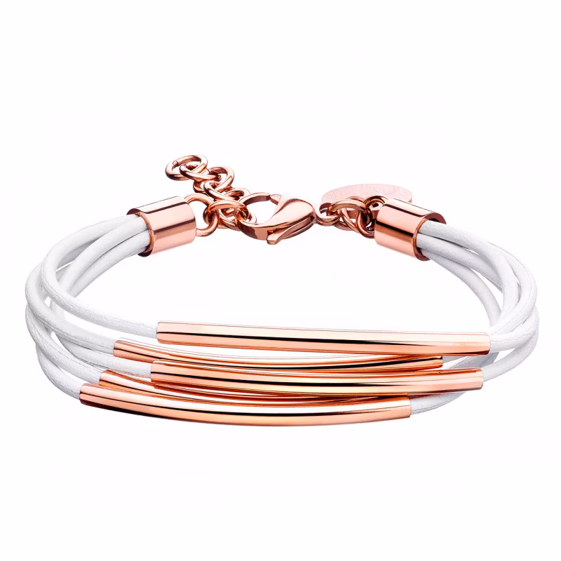 Elixa Armband 5-radigt roseguldplated stål och vitt läder