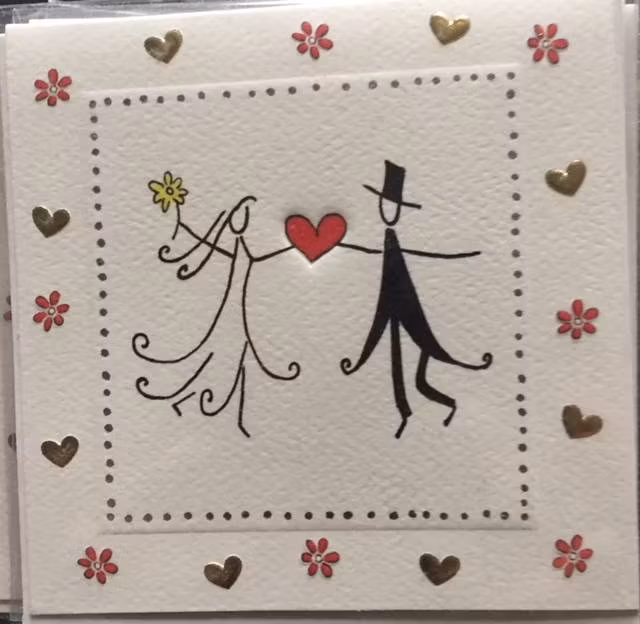 Dubbelvikt kort med motiv av ett bröllopspar