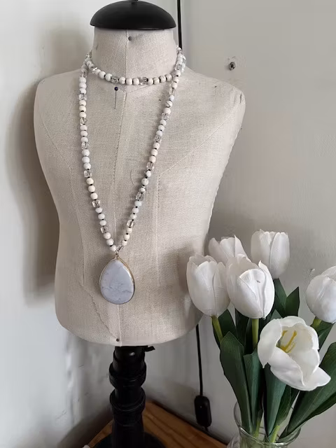Ljusblått vitt Långt Stenhalsband 90 cm från Odahl