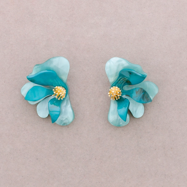 Matcha dina kläder med dessa iögonfallande trendiga turkos mintgröna örhängen Stora blommor dekorerade med gulddetaljer tillverkade i resin. Spanska modemärket sonata