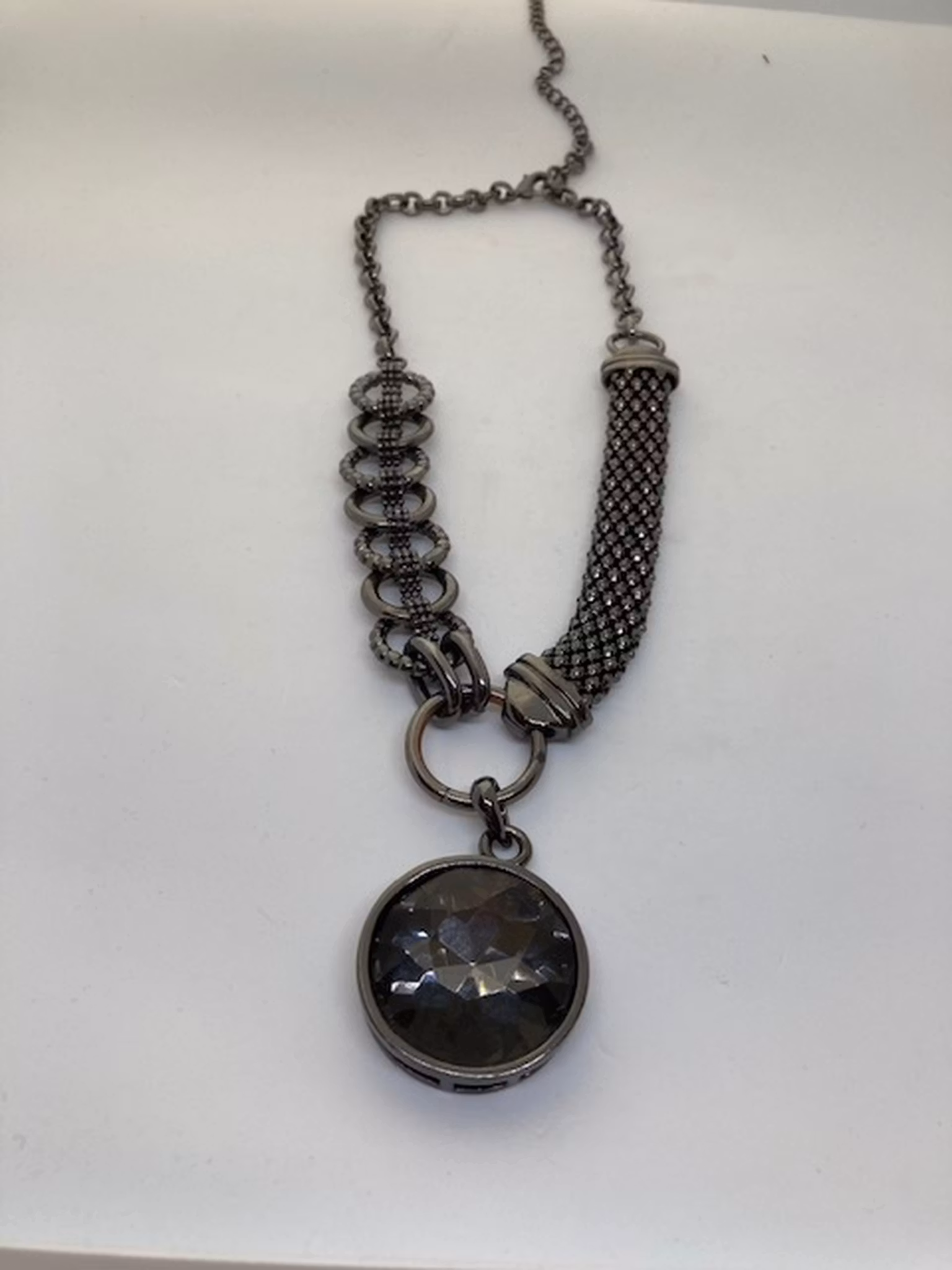 Rockigt fräckt halsband med 2 olikformade grova kedjor och ett kristallhänge fån Åsita.